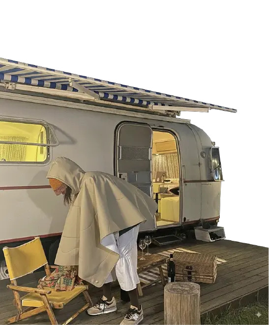 ECOFINEの特許製品「DY BALANCE」と看板製品「Lumin 1003」で作られた機能性プロテクションポンチョ。優れた防水性能で、常に快適な乾燥状態を保ち、軽量で通気性があり、暖かさをキープします。